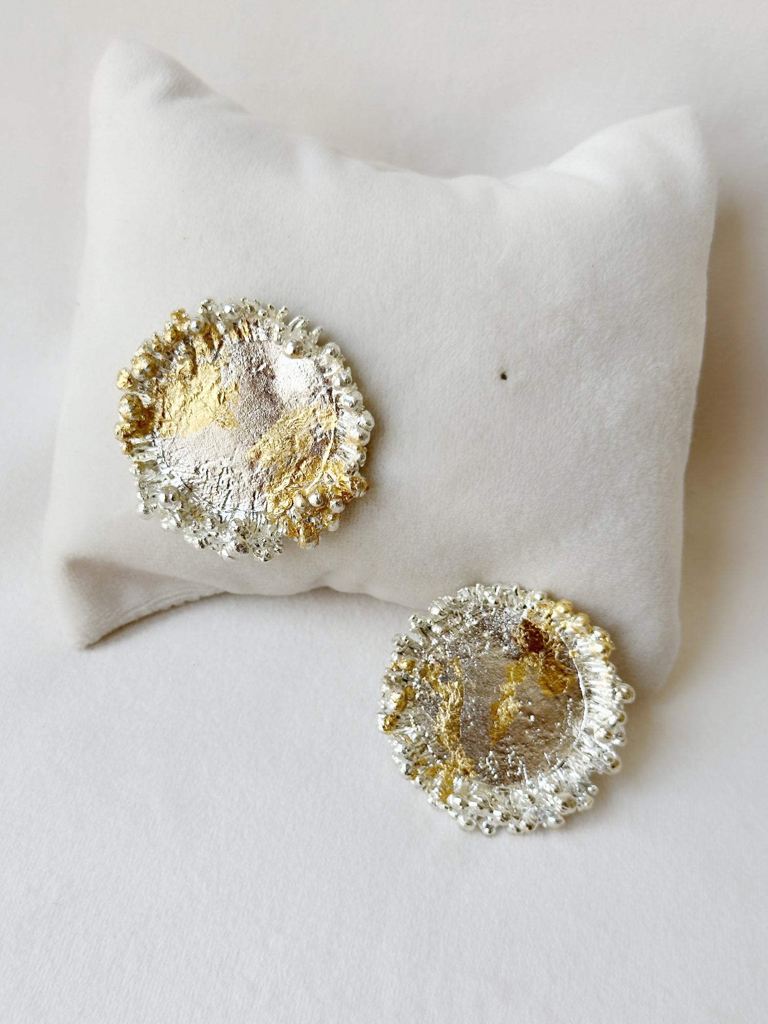 Embrace the celestial elegance of these textured statement pieces that catch the...