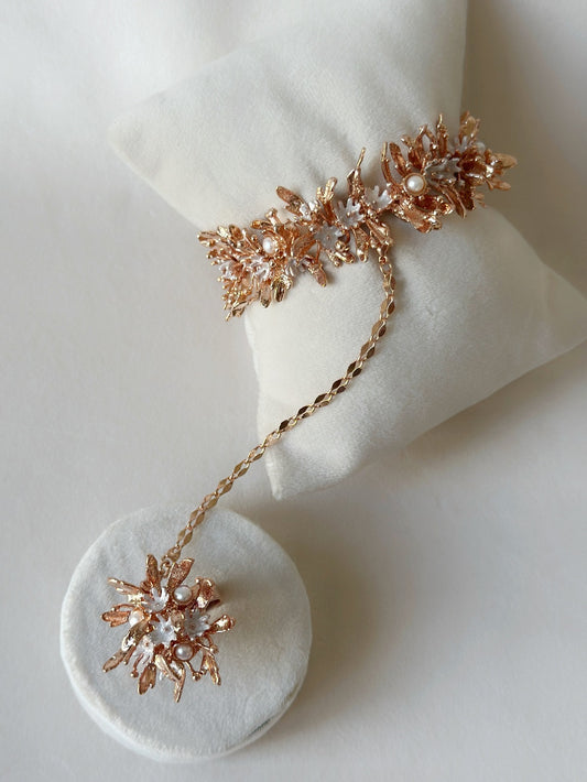 Blooming haathphool with pearls - Rose Gold