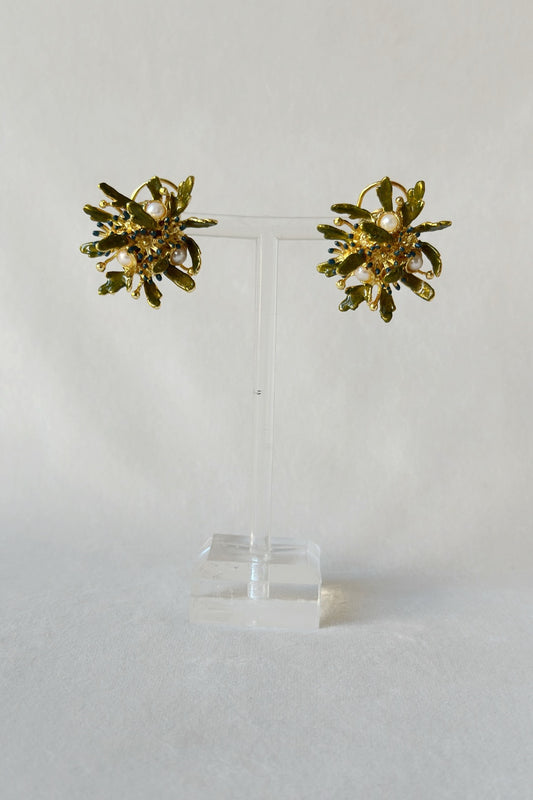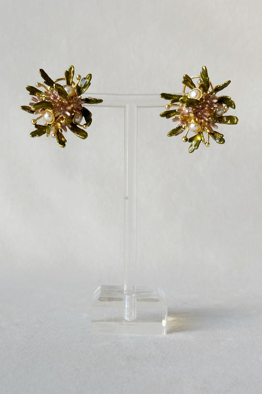 Sunshine Mini Pearl Studs - Silver springtime bouquet