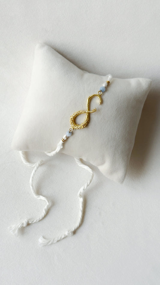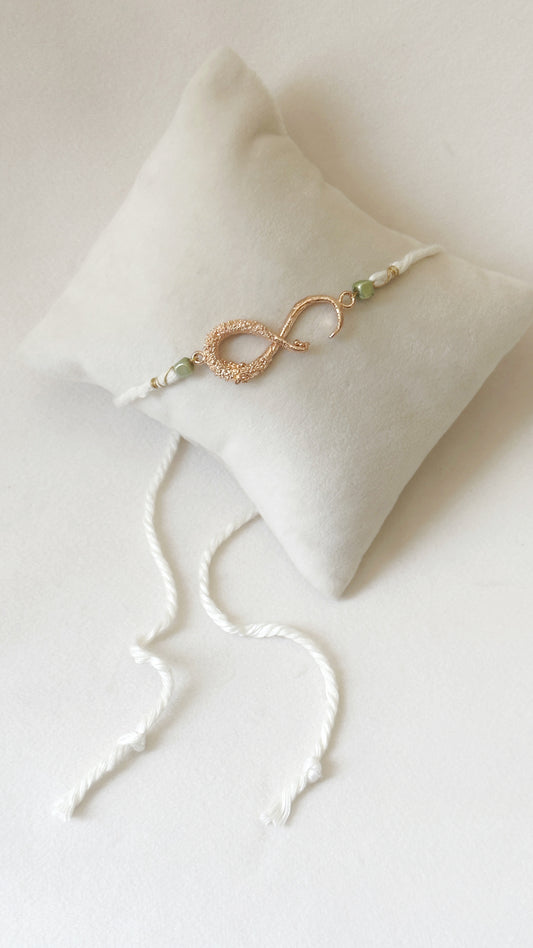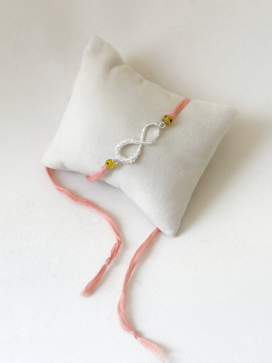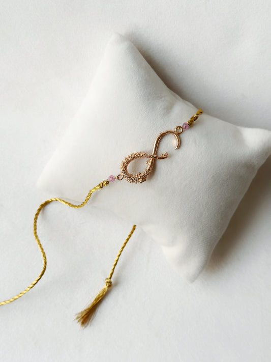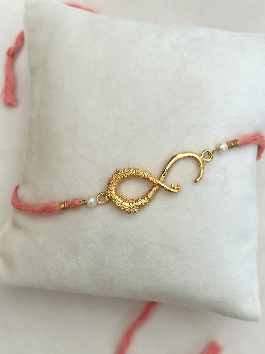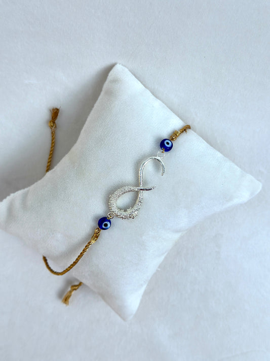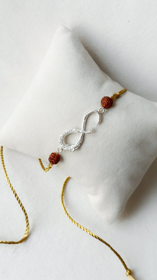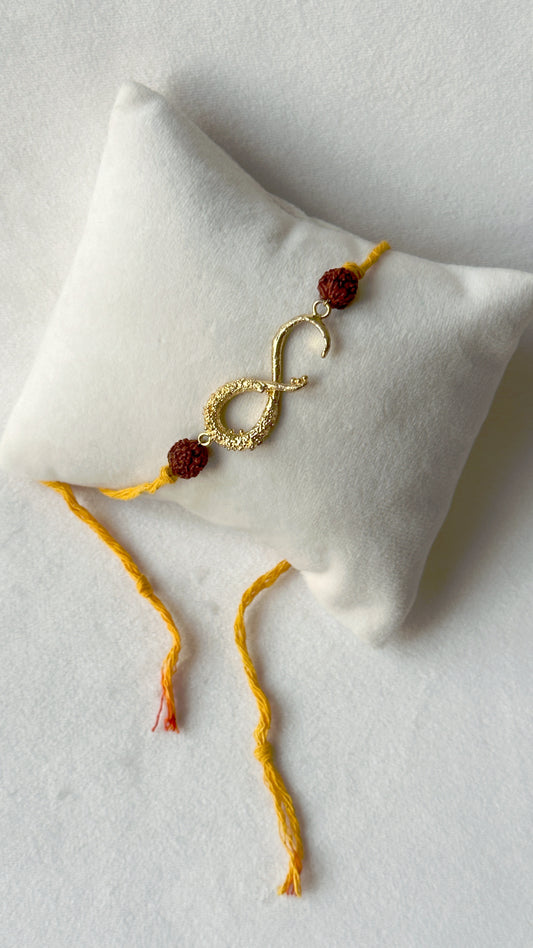 Infinity Rakhi Silver and Gold with Rudraksh beads