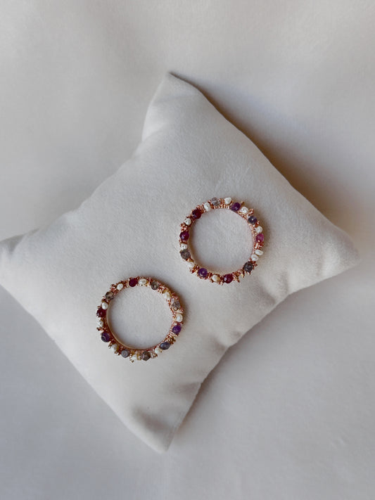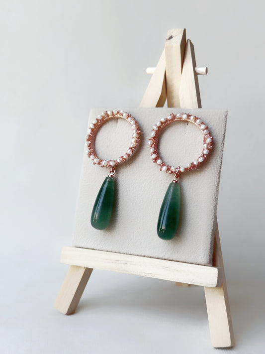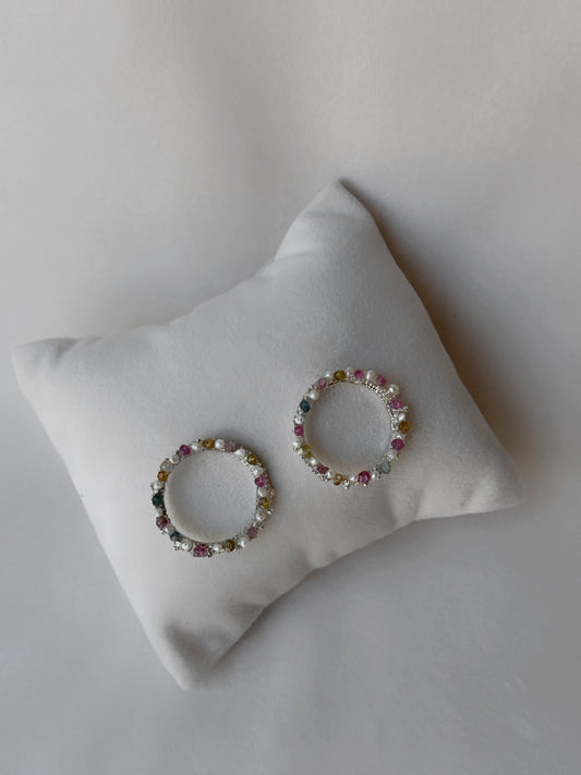 Candy drop danglers with Rose quartz, Tourmalines and freshwater pearls