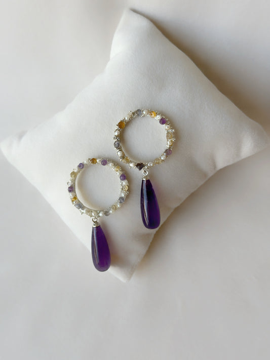 Candy drop danglers with amethyst, citrine and freshwater pearls