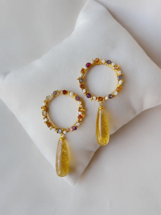Candy drop citrine danglers with citrine, amethyst and freshwater pearls