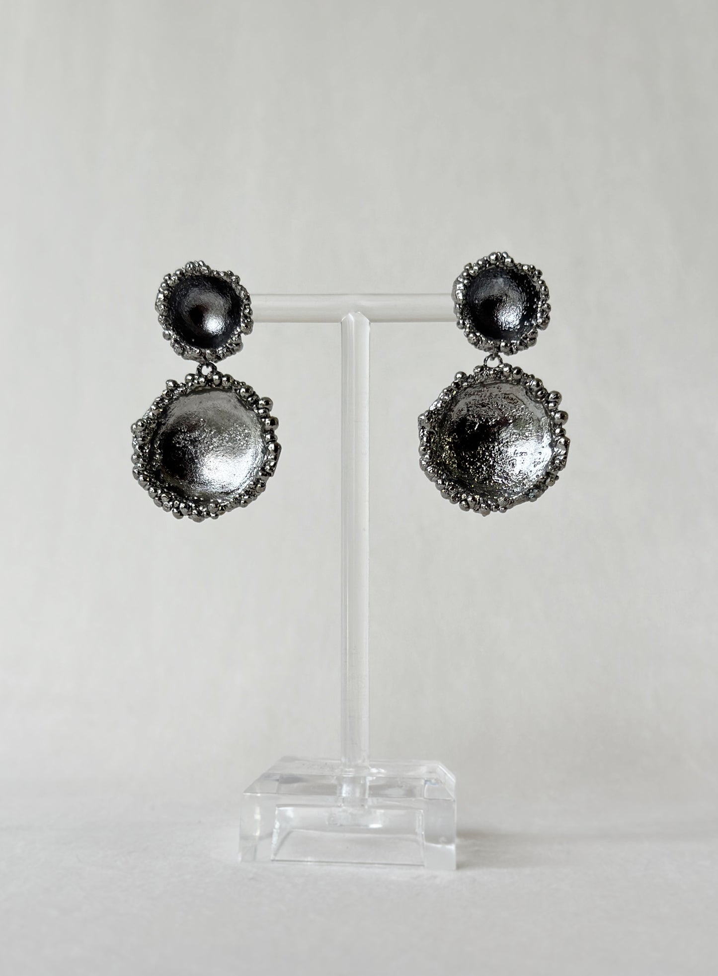 Rhodium black plated brass. All Figmenterie jewellery is coated with Hypoallergenic lacquer coatings to protect your skin as well as plating finishes.