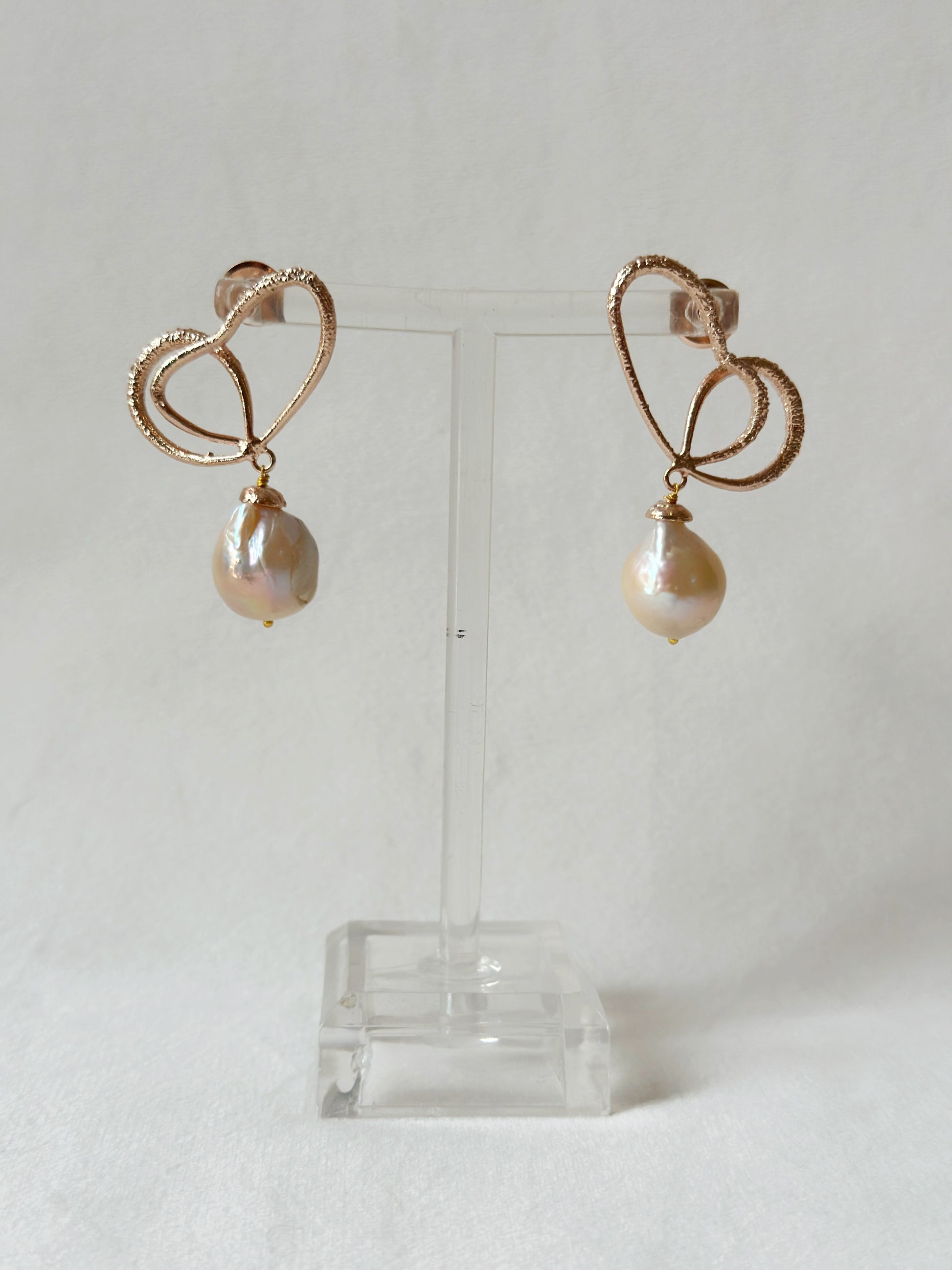 Rose gold plated Brass, Baroque Pearls. All Figmenterie jewellery is coated with Hypoallergenic lacquer coatings to protect your skin as well as plating finishes.